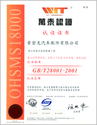 公司已先后通過IATF16949質量管理體系認證、ISO/14001環(huán)境管理體系認證和OHSAS18001職業健康安全管理體系認證。是“國家高新技術企業”“行業龍頭企業”和“全國百家優(yōu)秀汽車零部件供應商”。